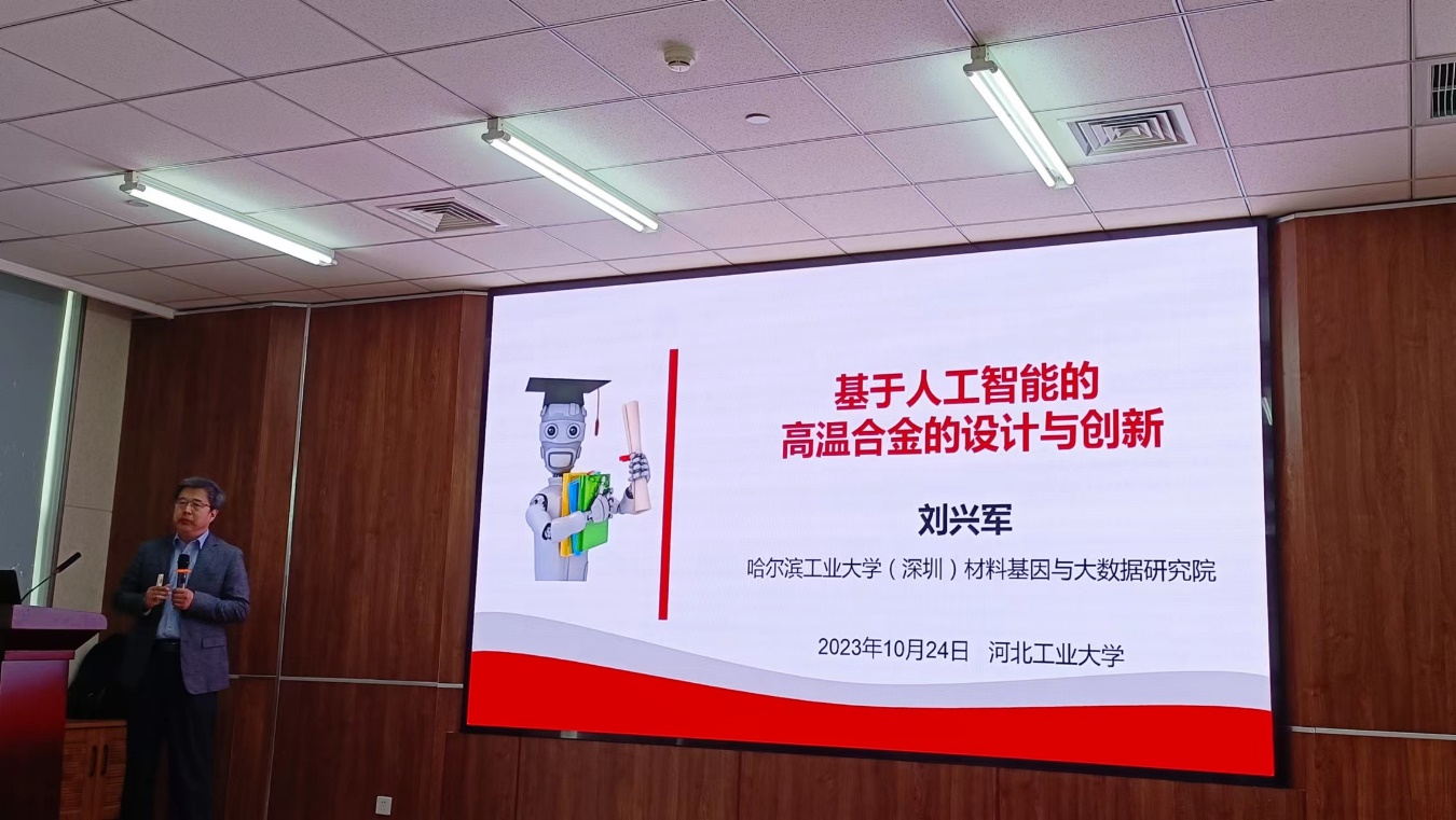 2023年10月24日上午,应我校党委常委、副校长王慧远邀请,哈尔滨工业大学刘兴军教授到学院进行学术交流,并在北辰校区机材楼C514报告厅作了题为《基于人工智能的高温合金的设计与创新》的学术报告。报告由王慧远主持,学院百余名师生参加。